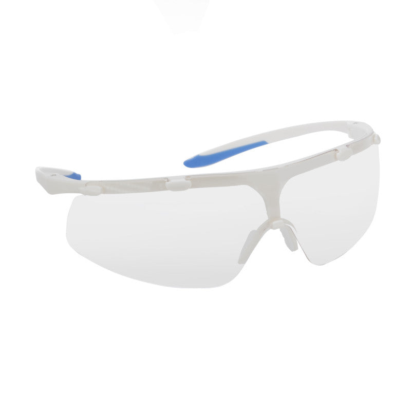 The uvex super fit CR safety glasses with anti-fog effect can be autoclaved and offer professional working protection in the lab, operating theatre and surgery. With a weight of only 21 g, these safety glasses are extremely light and have a special temple form for fewer pressure points and increased comfort. The wide panoramic field of vision provides great sight of the surrounding area, while optimally protecting the eyebrow and cheek areas.