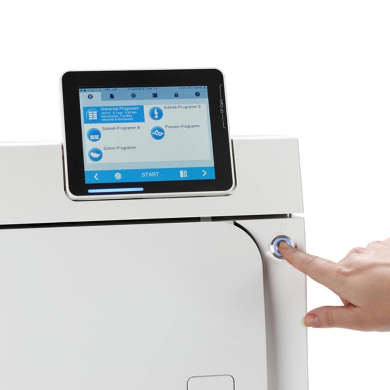 The autoclaves offer versatile loading options facilitated by various optional holders for up to 8 trays, allowing for efficient utilization and a maximum instrument load of up to 9 kg. The process is documented quickly, securely and, above all, paperlessly on the large colour touch display. For added convenience, the MELAconnect app provides access to the device status and program progress, and it also offers user manuals, practical video tutorials, troubleshooting, and seal check functions to support users effectively.