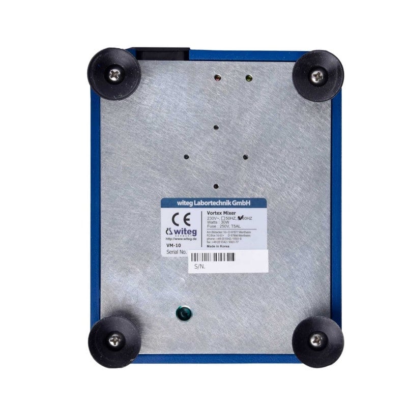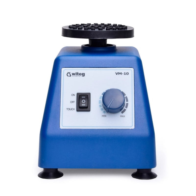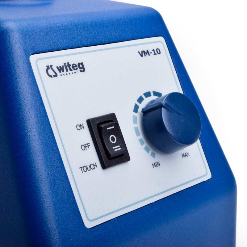 Vortex mixer for quickly mixing liquids in flasks and test tubes. The RPMs can be continuously set between 0-3,300.