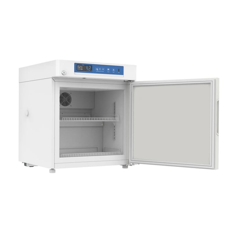 The YC-55 Pharmcy Refrigerator from Meling is equipped with a precise temperature control system with two highly sensitive sensors and meets the requirements of DIN 13277. In the event of a primary sensor failure, the secondary sensor is automatically activated to ensure a continuously constant temperature inside the refrigerator. To enhance the safety of stored medications, the pharmacy refrigerator features various alarm functions. An audible signal alerts for temperature deviations, power outage or improper door closure.
