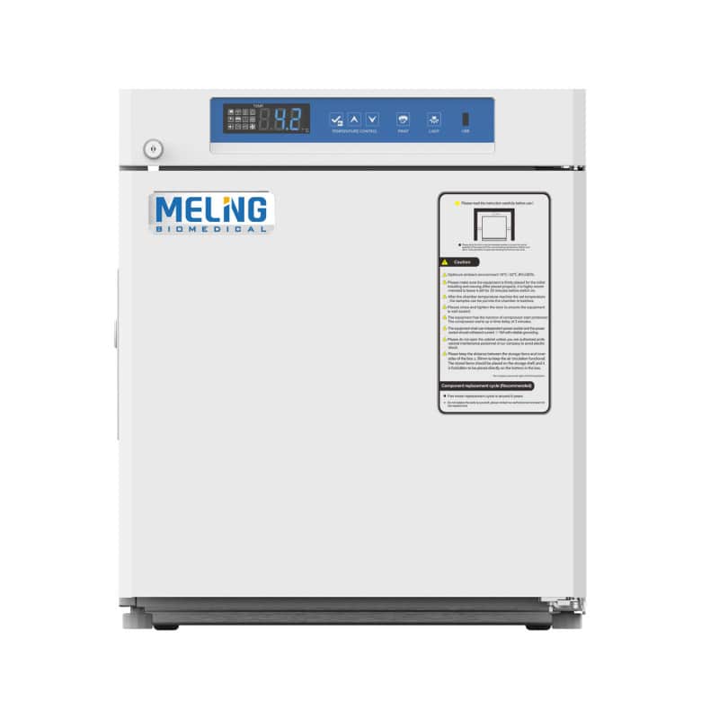 The YC-55 Pharmcy Refrigerator from Meling is equipped with a precise temperature control system with two highly sensitive sensors and meets the requirements of DIN 13277. In the event of a primary sensor failure, the secondary sensor is automatically activated to ensure a continuously constant temperature inside the refrigerator. To enhance the safety of stored medications, the pharmacy refrigerator features various alarm functions. An audible signal alerts for temperature deviations, power outage or improper door closure.