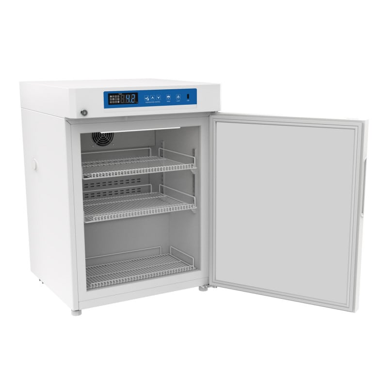 For added security, the refrigerator includes a locking system to prevent unauthorized access. The LED lighting ensures clear visibility of the interior, while the easy-to-clean PVC-coated steel wire shelves allow practical and hygienic storage. The refrigerator comes standard with a built-in USB data logger, remote alarm contact and RS485 interface for monitoring systems. The refrigerator is ideal for safe and reliable storage of medical samples and medications in healthcare facilities, laboratories and pharmacies.